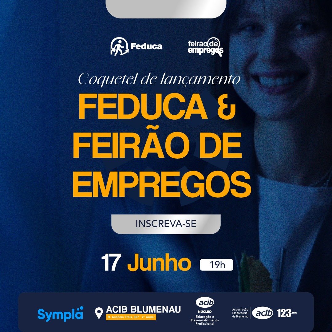 O Núcleo de Educação e Desenvolvimento Profissional da ACIB convida para o coquetel de lançamento oficial da Feira de Educação (Feduca) & Feirão de Empregos 2025. As feiras vão ocorrer simultaneamente em agosto na Vila Germânica.