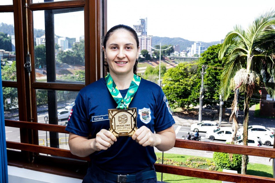 A agente de trânsito e atleta de Blumenau Fernanda Fátima de Campos, de 36 anos, foi campeã brasileira de jiu-jitsu na categoria Master 2/Leve (até 64kg). Considerado o segundo torneio mais difícil do mundo – ficando atrás apenas do Mundial –, o Campeonato Brasileiro foi disputado no fim de abril em Barueri (SP).
