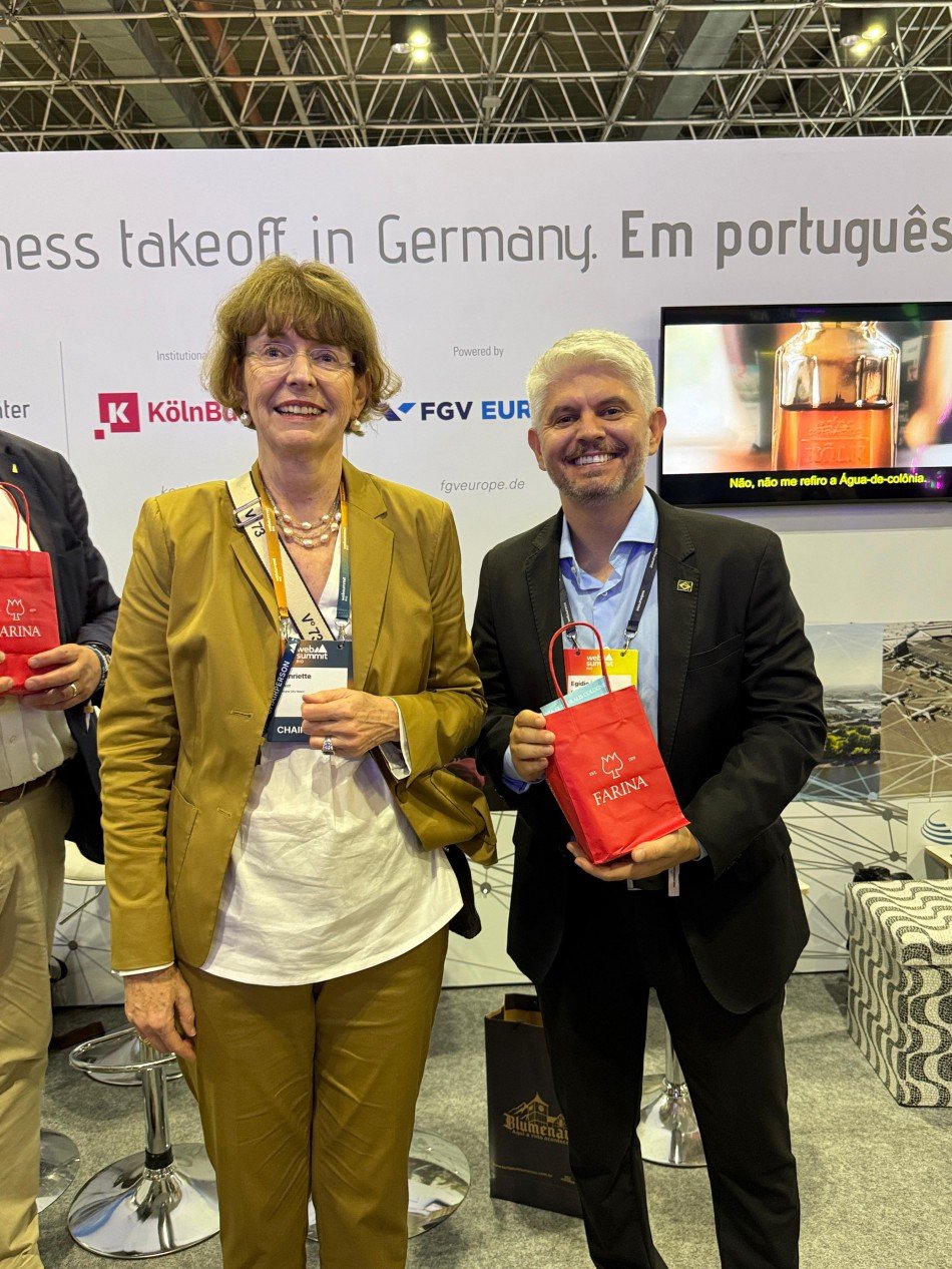 Prefeito de Blumenau se encontrou com a Prefeita de Colônia no evento Web Summit no Rio de Janeiro.