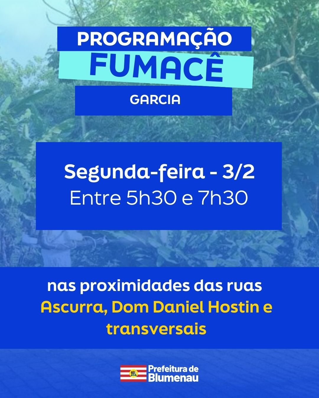 Na segunda-feira, dia 3, a Prefeitura de Blumenau realiza o fumacê no bairro Garcia.