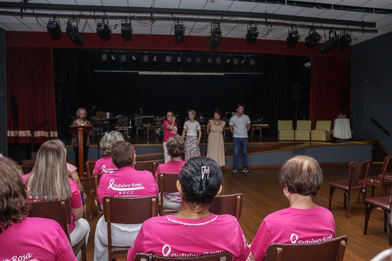 O Auditório Carlos Jardim, na Secretaria Municipal de Cultura e Relações Institucionais (SMC), ficou lotado na tarde desta quinta-feira, dia 6. Um público vestido com camisetas cor-de-rosa prestigiou a comemoração antecipada do Dia Internacional da Mulher. O evento foi organizado em parceria pelo Museu de Arte de Blumenau (MAB), Arquivo Histórico José Ferreira da Silva e Rede Feminina de Combate ao Câncer (RFCC).