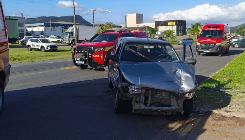 Trem de Socorro do Corpo de Bombeiros Militar de Rio do Sul foi acionado para ocorrência de acidente de trânsito na BR 470, chegando no local, constatou tratar-se de uma colisão transversal envolvendo dois veículos, onde: