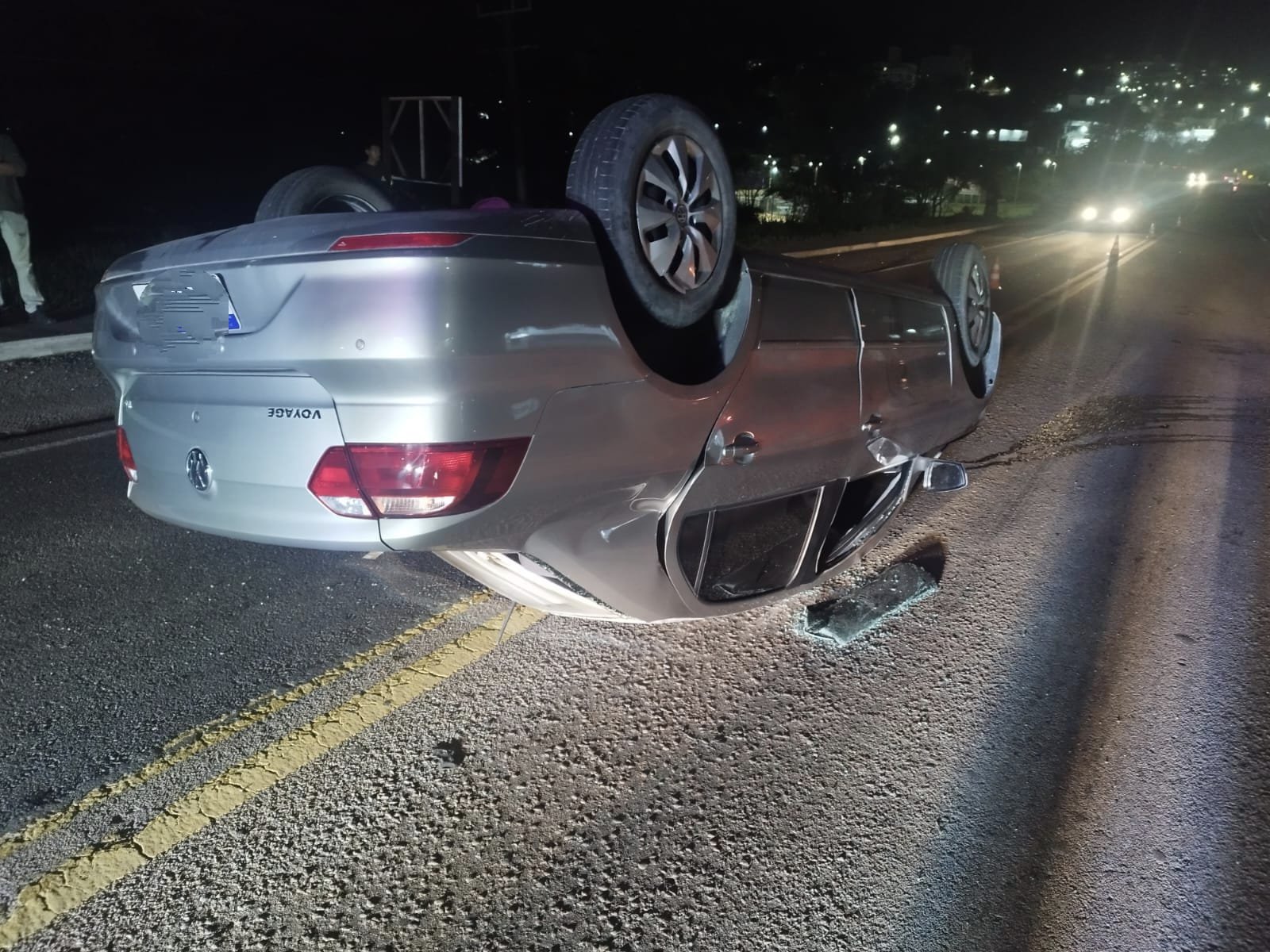 Chegando no local, constatou tratar-se de um capotamento de um veículo VW Voyage prata, que encontrava-se no meio da via, obstruindo parcialmente os dois lados da rodovia. O condutor não foi localizado no local da ocorrência. Gu do ABTR-103 sinalizou o local da ocorrência, gerenciou o trânsito e fez a limpeza da pista. Após os procedimentos foi deixado o local aos cuidados da PRF.