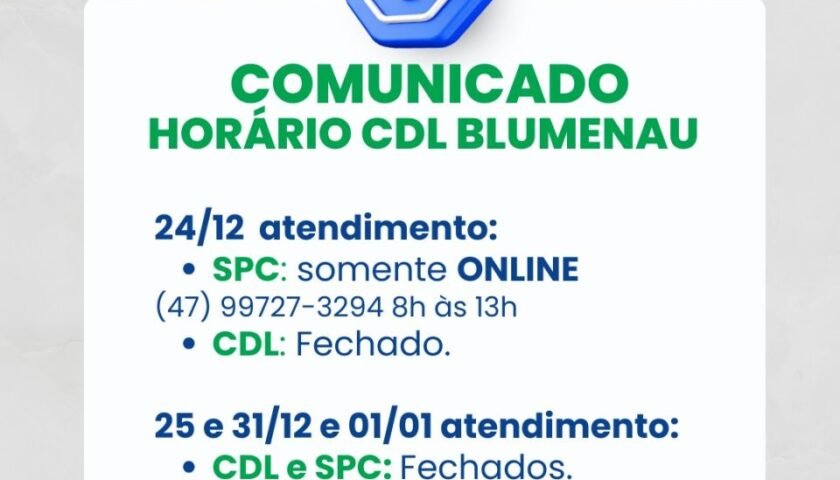 A CDL Blumenau informa que o atendimento aos associados e consumidores seguirá normalmente neste fim de ano, com…
