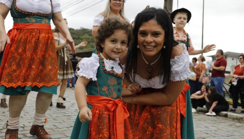 Famílias celebram o Dia das Crianças no desfile da 40ª Oktoberfest na Vila Itoupava.
