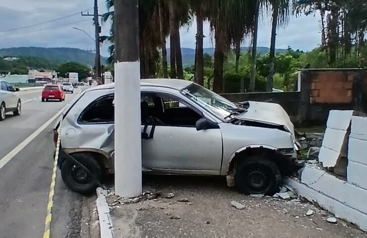 BR470 – APIÚNA COLISÃO DE CARRO EM POSTE NA BR-470, km 98