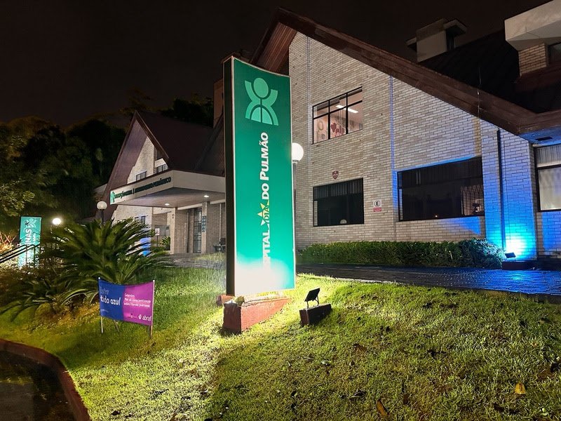 Hospital em Blumenau fica azul para conscientizar sobre fibrose pulmonar
