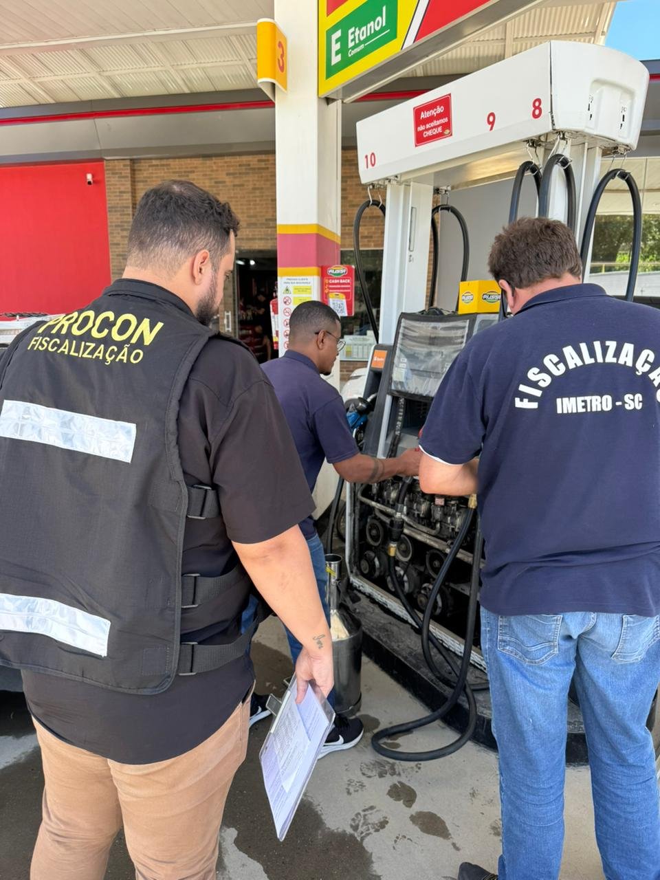 Nesta terça-feira (11), uma operação integrada fiscalizou três postos de combustíveis em Indaial, reunindo equipes do PROCON municipal, da Agência Nacional do Petróleo (ANP) e do Instituto de Metrologia de Santa Catarina (IMETRO/SC). A ação teve como objetivo verificar a qualidade e a procedência dos combustíveis comercializados, o correto funcionamento das bombas e o cumprimento das normas de defesa do consumidor.