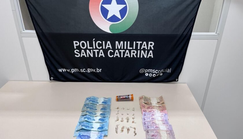 Homem de 34 anos é preso após ser abordado com drogas no centro de Blumenau.