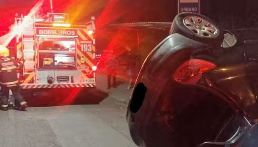 Veículo capota e carro começa a pegar fogo em Blumenau, motorista foge do local. Veículo capota,…