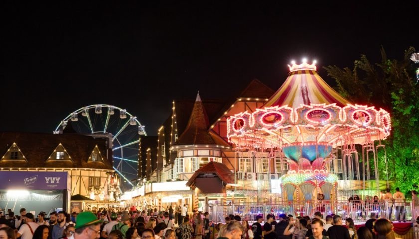 Oktoberfest Blumenau resgata tradição com parque de diversões no estacionamento do Galegão