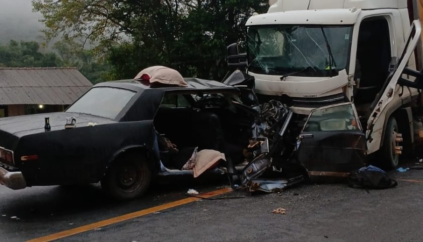 Os ocupantes do caminhão ficaram aos cuidados da PRF de Rio do Sul.