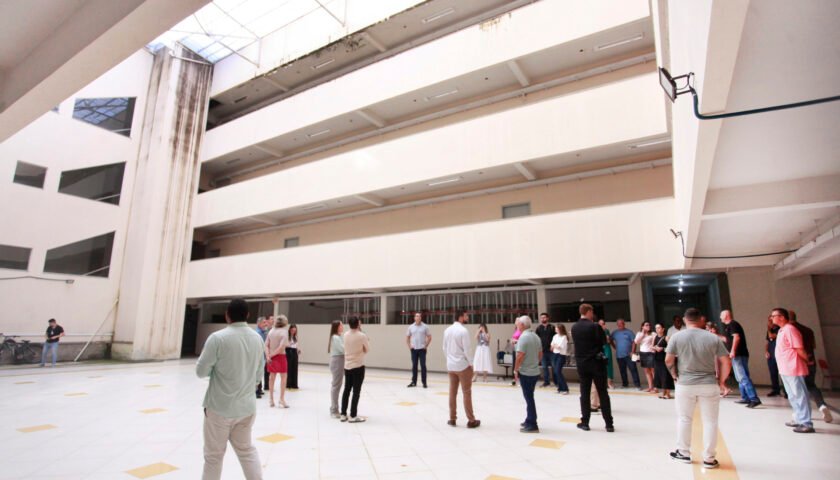 Vereadores e servidores da Câmara de Blumenau fizeram, na manhã desta segunda-feira (24), uma visita ao prédio público da Rua Capitão Santos, no bairro Garcia, que pode ser a nova sede do Legislativo. O convite partiu do presidente da Casa, Ailton de Souza – Ito (PL), que fez questão de levar o grupo para conhecer o imóvel.